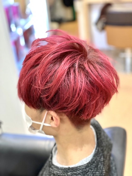 RICHAIRGREEN花田店 スタイリストの佐藤です!!! 今回はブリーチしてビビットレッド系のカラーをいれました! ビビットに色がはいってるので かなり色持ちもいいと思います。 似合っててカッコいい仕上がりになりました!