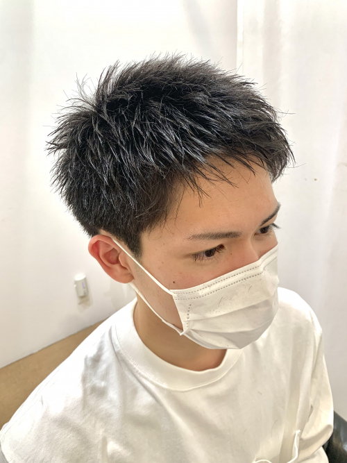 RICHAIRGREEN花田店スタイリストの白石です! はじめて弟が来てくれました!! 切り始めは不安がってましたが、、、(笑) かっこよく仕上がりました♪ (マスク毛だらけ) ジェル仕上げで爽やかスタイルに!!! また来てね〜!