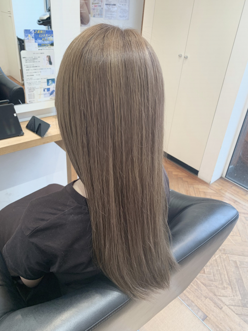 RICHAIRGREEN花田店スタイリストの白石です! ベージュカラー。 ブリーチ2回以上しているお客様です。 透明感があってすごく可愛い色です!! ミルクティー、ベージュカラーお任せください♪