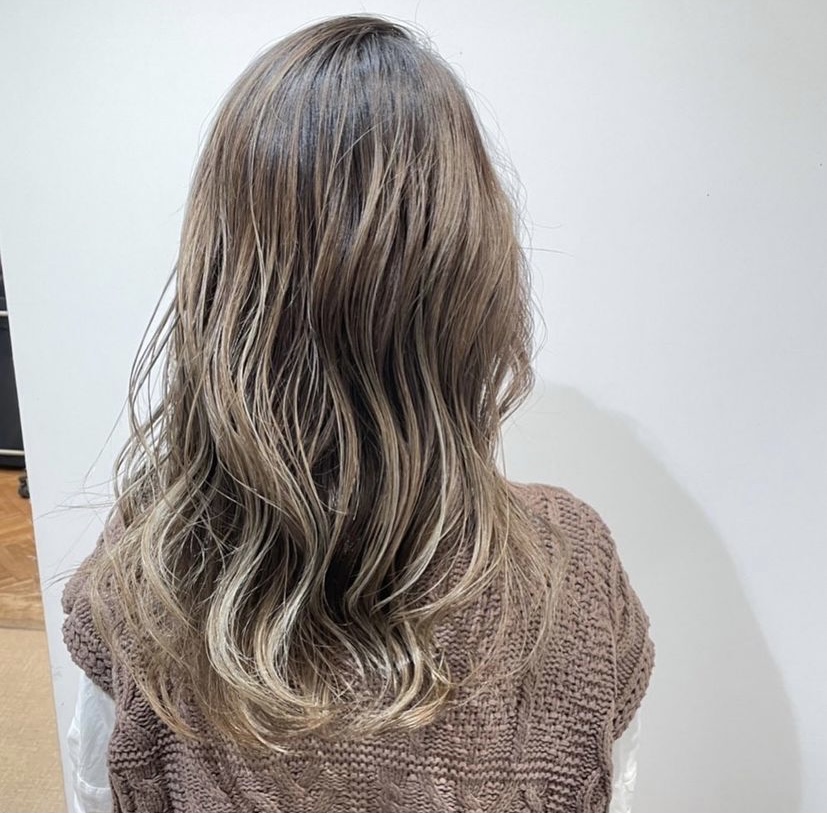 一度のブリーチやハイライトで赤みが気になる方は何回も入れることで透明感のあるカラーになります。